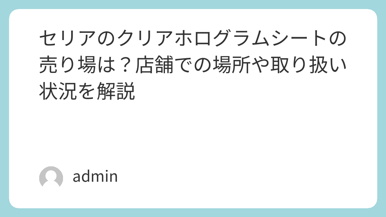 そこで今回は、セリアのクリアホログラムシートが置かれやすい場所、見つからないときの探し方、サイズや使い道、さらに他店で買える代替先までまとめて解説します。先に結論を言うと、推し活グッズコーナー、文具コーナー、ハンドメイド・手芸コーナーの順で探すと見つけやすい傾向です。実際に複数店舗を確認した記事でも、商品によって「推し活グッズエリア」と「文具エリア」に分かれていたと紹介されています。